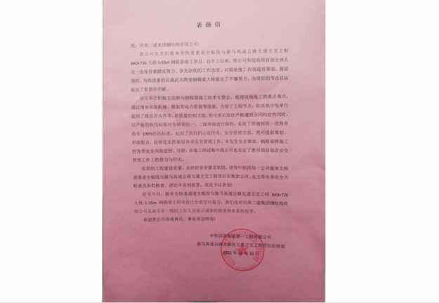 河南安瑞置业有限公司等多家单位向公司发来表扬信